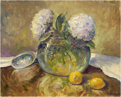 "Arrangement with Sea Shell" will be auctioned at the American Heart Association's 2004 Art and Wine Gala and Auction. This event will be held on February 28th, 2004 at Charleston Place. Please call (843) 853-1597 for further information.