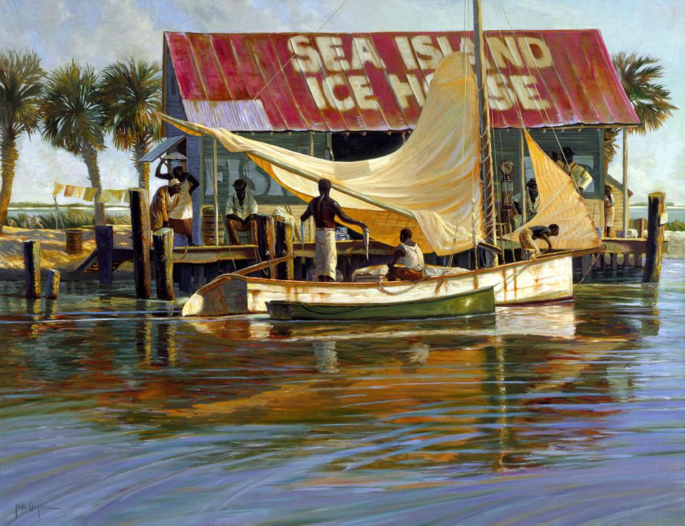 "From the sea islands in the Carolinas to the harbors of the Caribbean, not very long ago "Mosquito Fleets" of black fisherman harvested the salt water bounty to eat and to sell to the residents of coastal towns. These were somewhat "general stores" along the water-ways, and these ice houses and bate sheds served these small fleets with ice, gossip, and credit." The Artist, John Doyle
